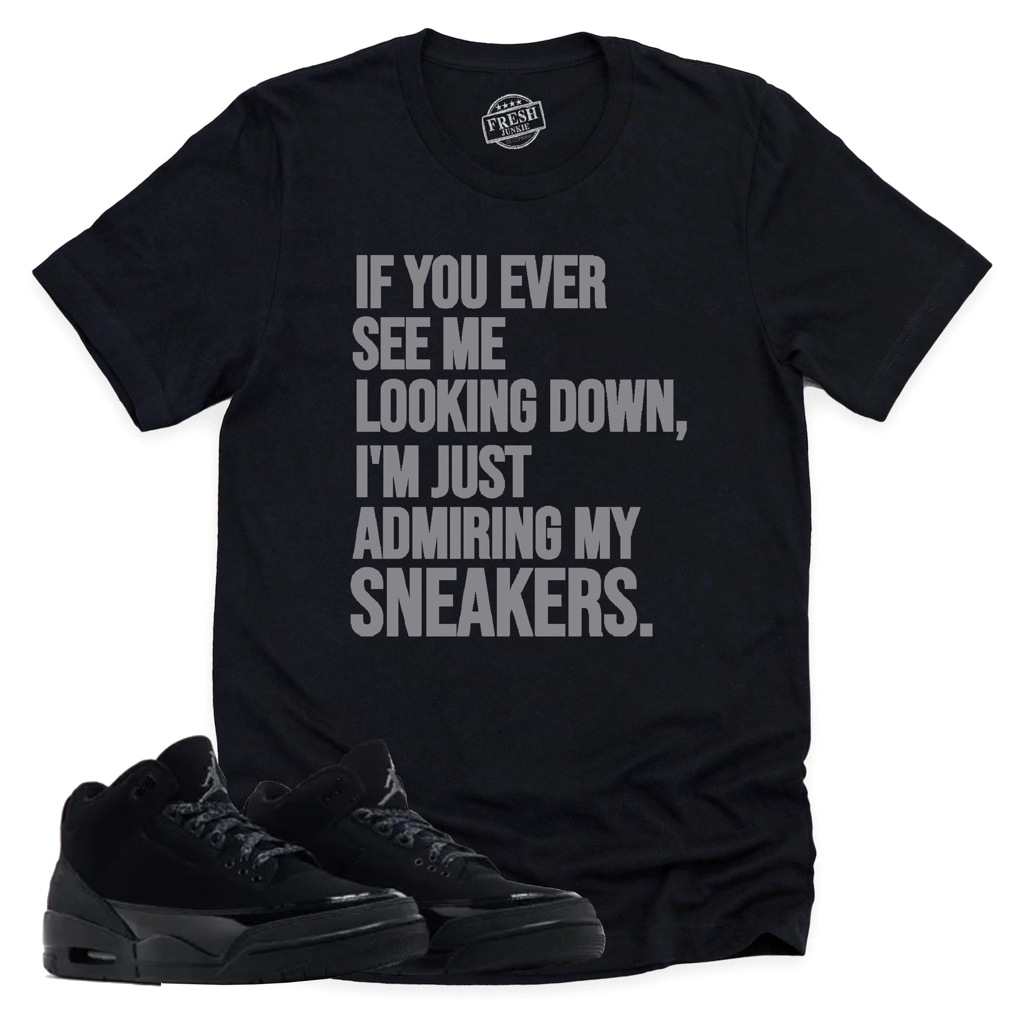 Admiring My Sneakers Shirt | Air Jordan 3 Black Cat Inspired Tee is the perfect tee to match the Air Jordan 3 Black Cat Sneakers! This Fresh Junkie tee is perfect for any sneakerhead!
