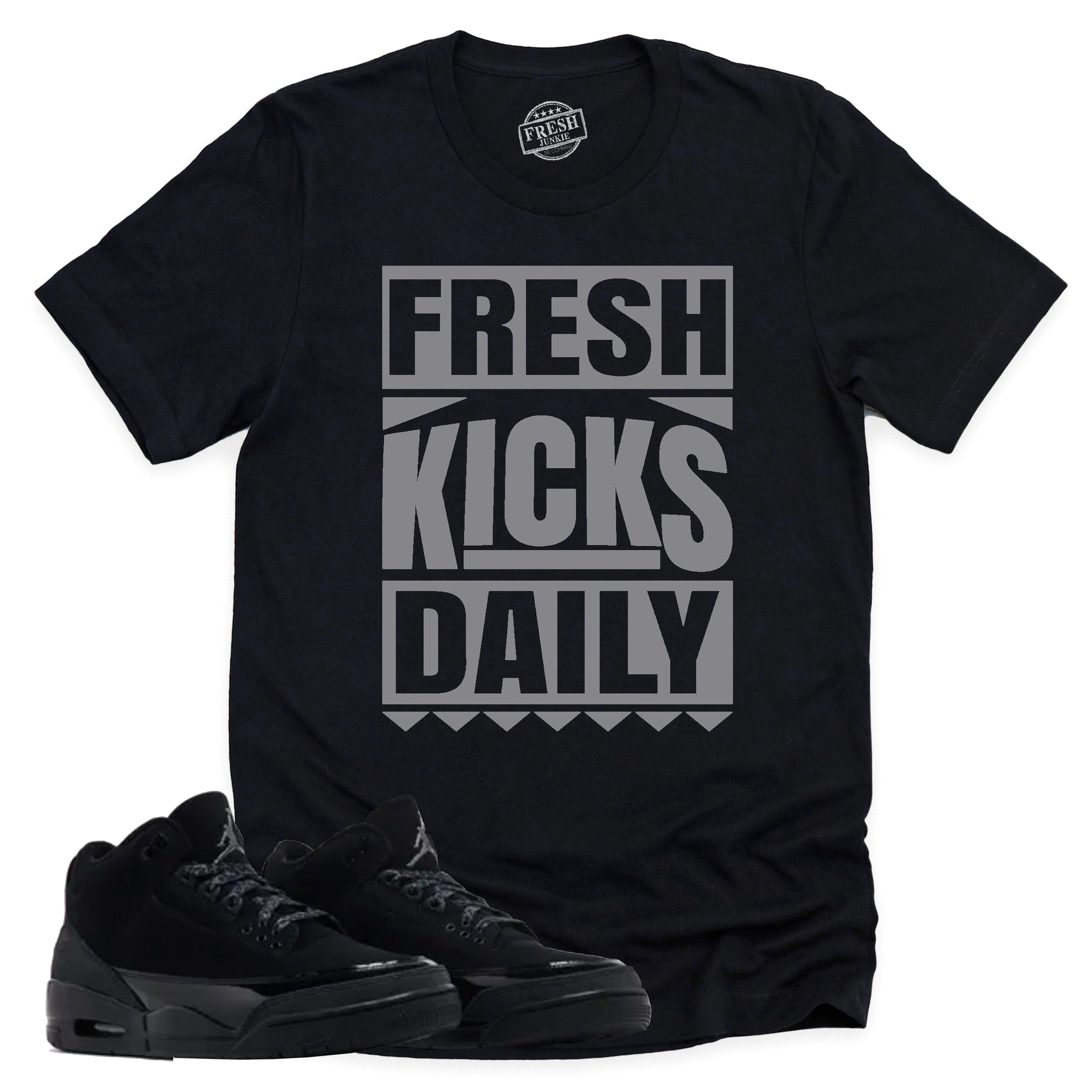Fresh Kicks Daily Shirt | Air Jordan 3 Black Cat Inspired Tee is the perfect tee to match the Air Jordan 3 Black Cat Sneakers! This Fresh Junkie tee is perfect for any sneakerhead!